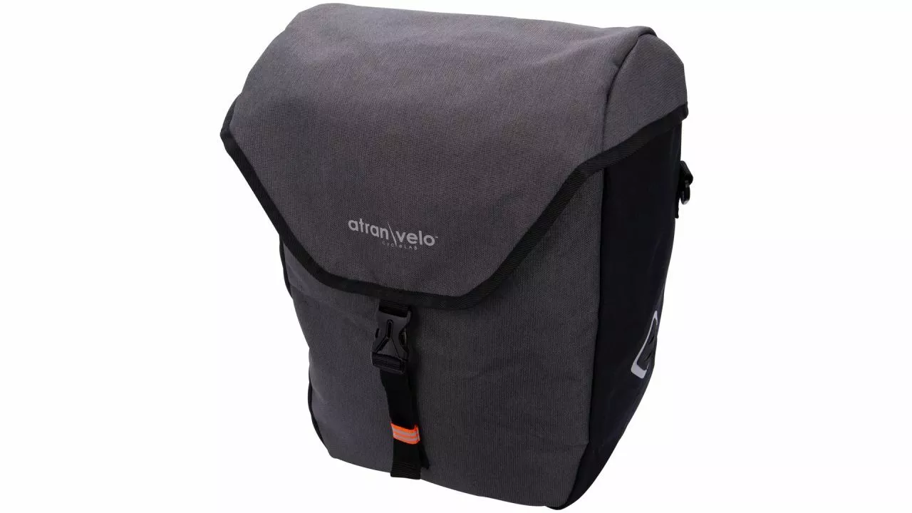 ATRANVELOs ZAP Single AVS ist eine vielseitig einsetzbare Tasche egal, ob auf dem Weg zur Arbeit, zum Einkaufen oder auf einer Tagestour. Sie fasst 25 l und ist mit einem AVS-Systemadapter ausgestattet, wodurch sie spielend leicht an einem AVS-Träger festgeklickt werden kann. Für bessere Sichtbarkeit im Straßenverkehr kann die reflektierende Gurtschlaufe optional um ein Rücklicht ergänzt werden. Bei der Arbeit oder am Reiseziel angekommen, lässt sie sich genauso leicht wieder abnehmen. Mit dem praktischen Tragegurt kann man die wasserabweisende Tasche dann über der Schulter mitnehmen. Sie wiegt 750 g.