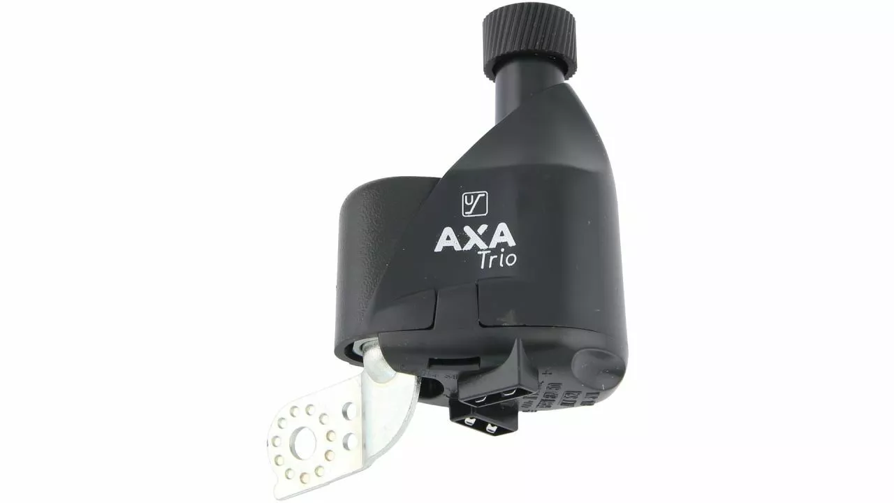 Beim Trio von AXA handelt es sich um einen Dynamo mit einem guten Preis-Leistungs-Verhältnis.<br>Dieser Dynamo ist geräuscharm und mit einer verzahnten Kunststofflaufrolle versehen. Dabei verfügt er über Stahllager, einen Edelstahlschacht und ein stoßfestes Gehäuse.<br>Außerdem profitiert man hier von einer Überspannungsdiode, die Ihre Beleuchtung vor unerwarteten Spitzen in der Stromversorgung schützt.