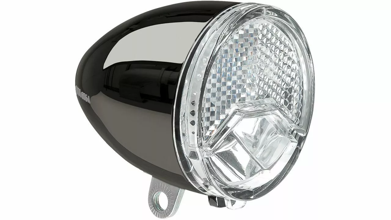 Der AXA Scheinwerfer 606 E-Bike ist ein klassischer Scheinwerfer in coolem Retro-Design. Optisch passt er perfekt an dein E-Bike im Vintage-Look. Er hat einer Lichtleistung von 15 Lux und kann an einen 6-48 V E-Bike-Akku angeschlossen werden. Der Lichtkegel leuchtet etwa 35 m in die Ferne, gesehen wirst du aber bereits aus etwas mehr als zwei Kilometern Entfernung.