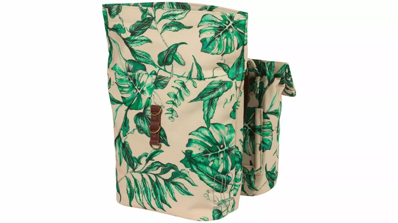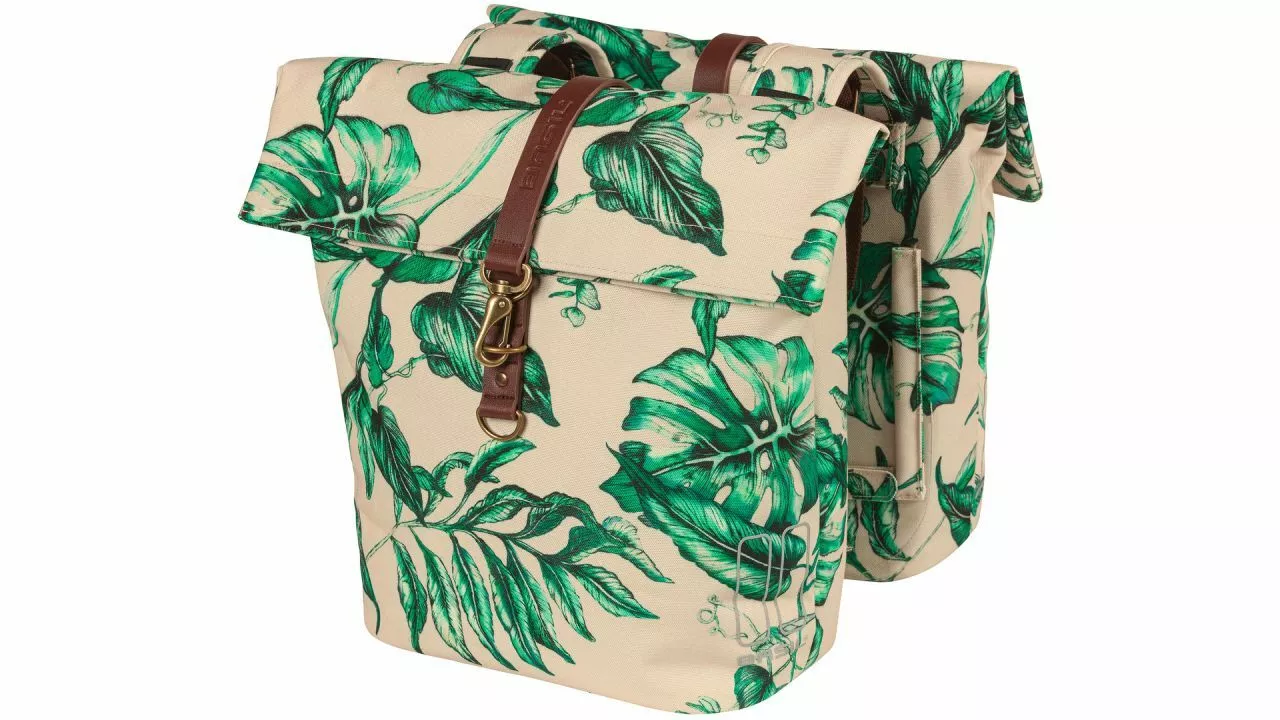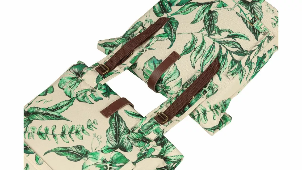 Darf es etwas ganz Besonderes sein? Dann hol dir die BASIL Ever Green Doppeltasche für deine nächste Tour! Sie überzeugt aus drei Gründen. Erstens: Sie ist aus nachhaltigen Materialien gefertigt. Zweitens: Sie ist praktisch. Und drittens: Sie sieht dabei auch noch toll aus. <br><br>Die Ever Green Doppeltasche ist zu 40 Prozent aus recyceltem PET-Kunststoff gefertigt. Das sind 39 Plastikflaschen à 350 ml. Der wasserfeste Faltverschluss sorgt dafür, dass deine Sachen einen kleinen Regenschauer trocken überstehen. Außerdem kann die Größe der Tasche mit dem Karabinerhaken variiert werden. Das Volumen kann von 28 auf 32 Liter erhöht werden. <br><br>Das stylische Blumen-Print hat die niederländische Künstlerin Meggy Lemmens entworfen. Riemen aus veganem Leder mit Karabinerhaken sowie Bronzeteile in Antikoptik runden diese Statement-Tasche modisch ab. <br><br>Die Doppeltasche ist mit dem Universal Bridge System ausgestattet. Wie du sie am Gepäckträger festmachst, ist dir überlassen. Entweder funktioniert das mit den vormontierten Riemen, in Kombination mit einer MIK-Adapterplatte oder dem BASIL DBS-System.