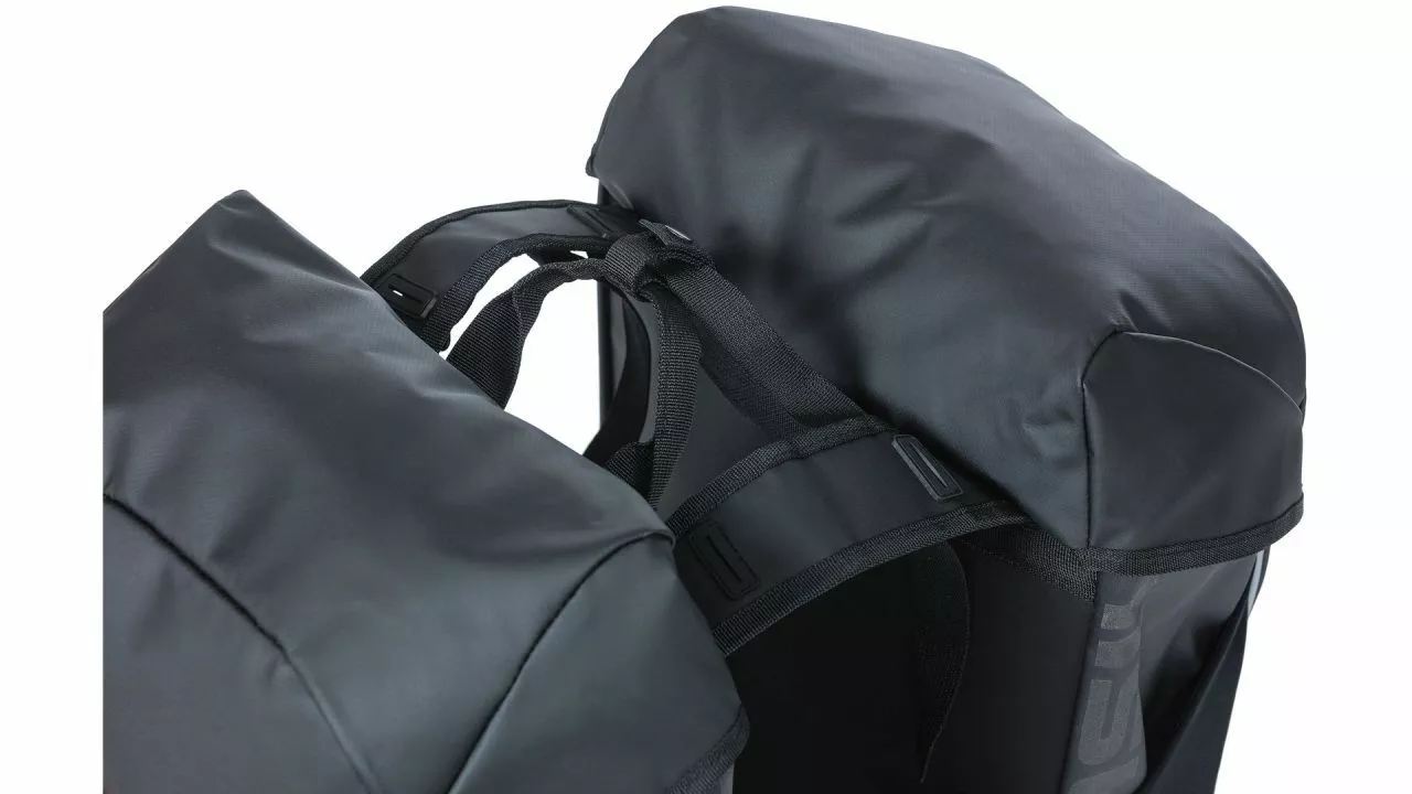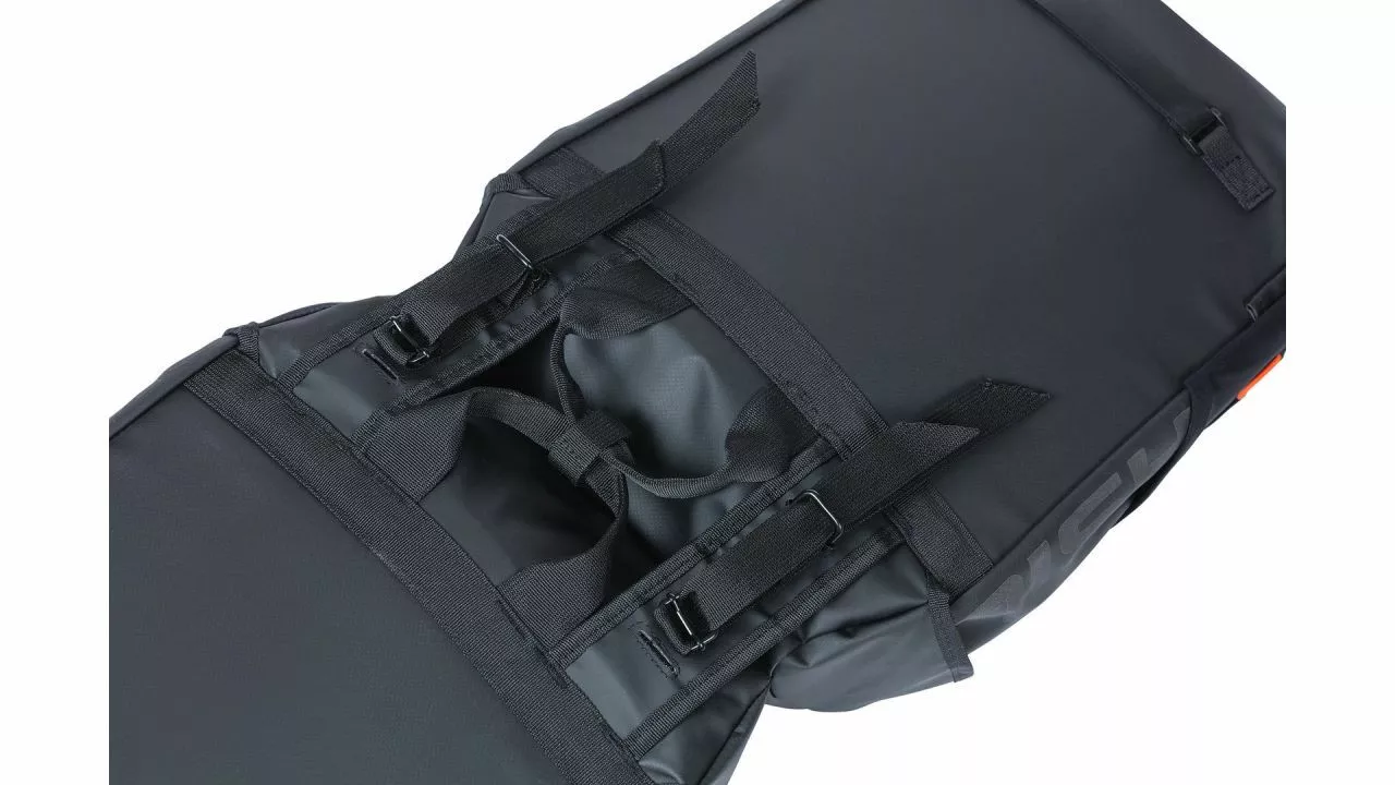 Keine Ausreden mehr und ab auf die nächste Tour! Das Wetter spielt keine Rolle. Die BASIL Doppeltasche Miles machts möglich, denn sie ist aus wasserdichtem Tarpaulin (IPX3) gefertigt und hält somit auch kräftigen Regenschauern stand. <br><br>Mit einer Kapazität von 34 Litern ist in der Doppeltasche genug Platz für Wechselkleidung. Der praktische Rollverschluss mit Druckknopf unterstützt zusätzlich, dass der Inhalt trocken bleibt. Damit du im Straßenverkehr besser gesehen wirst, ist die Tasche mit reflektierenden Elementen versehen. Kleine Schlaufen bieten die Möglichkeit, zusätzliche LED-Leuchten anzuklemmen. <br><br>Die Tasche gibt es mit zwei verschiedenen Befestigungsvarianten. Entweder ist sie mit dem Universal Bridge System ausgestattet und ist somit kompatibel mit Trägersystemen von MIK, Racktime oder BASIL DBS. Oder du wählst eine Tasche mit vormontierter MIK-Adapterplatte. Dann kannst du sie zusammen mit einer MIK-Trägerplatte auf dem Gepäckträger befestigen.