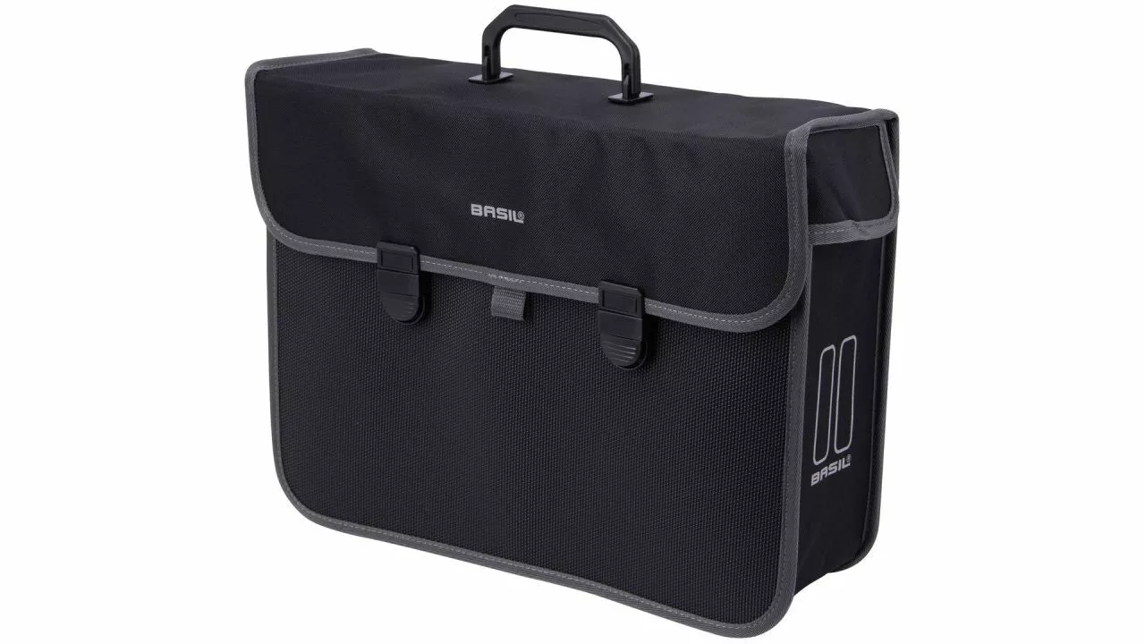 Diese schwarze, abnehmbare Tasche von BASIL lässt sich mit Hilfe von Kunststoffhaken an der Seite des Gepäckträgers befestigen. Mit einem Inhalt von 17 l ist die Malaga XL ideal fürs Einkaufengehen. Auch für eine Fahrradtour in der Umgebung ist die Tasche eine tolle Erfindung, da sich ein Lunchpaket oder Regenkleidung darin verstauen lässt. Selbstverständlich lassen sich darin auch andere Arten von Gepäck transportieren. Es hängt ganz davon ab, wofür man seine Fahrradtasche benutzen möchte, nichtwahr? <br><br>Die Fahrradtasche Malaga XL ist an der Seite mit doppelten Reflektorstreifen versehen. Hiermit fällt man auch abends während seiner Fahrradfahrt auf. Darüber hinaus sind die Seitenklappen mit einem Gewicht verstärkt, wodurch Wasser keine Chance bekommt, in die Tasche einzudringen. <br>Ferner lässt sich die Fahrradtasche leicht mit Hilfe eines Klickverschlusssystems öffnen und schließen.