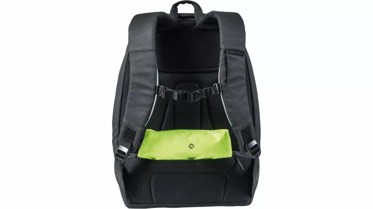Beim B-Safe Backpack von BASIL handelt es sich um einen auffälligen Rucksack mit einigen innovativen Raffinessen und einem geräumigen Volumen von 18 l. Der Fahrradrucksack ist Fahrradtasche und Rucksack in einem. Die Tasche hat mit einem nicht sichtbaren Reißverschluss und einigen verborgenen Fächern eine effektive Anti-Diebstahl-Konstruktion. Ihre Gegenstände können Sie also diebstahlsicher transportieren. <br><br>In die Tasche passt ein 15.6-Laptop oder -iPad. Auch ein Ladegerät für das E-Bike und andere kleine Accessoires passen in die Tasche. Ausweis oder Fahrkarte sind im verdeckten Fach am Schulterriemen griffbereit und sicher untergebracht. Darüber hinaus können Sie am integrierten USB-Port Ihr Smartphone aufladen.<br>/> <br>/> Eine weitere intelligente Funktion ist die LED-Beleuchtung an der Vorderseite der Tasche (Nordlicht Technology). Diese dient als praktische Zusatzbeleuchtung, ersetzt jedoch in keiner Weise die gesetzlich vorgeschriebene Fahrradbeleuchtung.<br><br>Für optimalen Tragekomfort hat der Rucksack eine gepolsterte Rückseite und gepolsterte Schulterriemen. Mit dem Hook-On-System lässt sich die Tasche ganz einfach am Gepäckträger des Fahrrads oder E-Bikes einhängen. Durch den Transport des Rucksacks auf dem Gepäckträger statt auf dem Rücken erspart man sich einen schweißnassen Rücken.<br>Das Gewicht der Tasche ist auf dem Gepäckträger ein Stück nach unten verlagert, wodurch das Rad an Stabilität und damit auch an Sicherheit gewinnt.