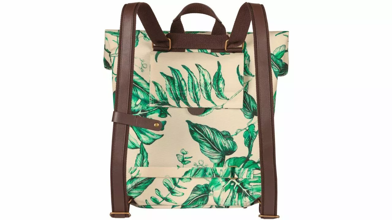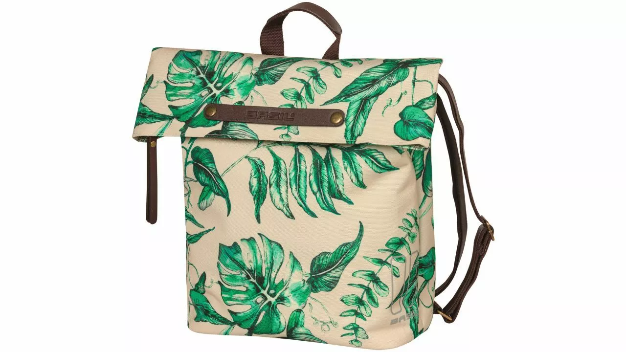 Eine Tasche drei Varianten: Das ist der Ever Green Daypack von BASIL. Nachhaltig und modisch ist er noch dazu. Der Rucksack ist nämlich zu 40 Prozent aus recyceltem PET-Kunststoff gefertigt. 21 Plastikflaschen à 350 ml sind in diesem Rucksack verwertet. <br><br>Der wasserfeste Faltverschluss sorgt dafür, dass deine Sachen einen kleinen Regenschauer trocken überstehen. Außerdem kann die Größe des Rucksacks mit dem Karabinerhaken zwischen 14 und 19 Litern variiert werden. <br><br>Das stylische Blumen-Print hat die niederländische Künstlerin Meggy Lemmens entworfen. Riemen aus veganem Leder mit Karabinerhaken sowie Bronzeteile in Antikoptik runden diese Statement-Tasche modisch ab. Für maximale Sicherheit im Straßenverkehr ist der Rucksack mit Reflexstreifen an allen Seiten ausgestattet. <br><br>Der Rucksack kann in drei Varianten genutzt werden. Möglichkeit eins: Du schnallst ihn auf deinen Rücken. Möglichkeit zwei: Du trägst ihn als Schultertasche. Der Tragegurt lässt sich umfunktionieren. Möglichkeit drei: Du klemmst ihn dank des Hook-on-Systems ganz einfach an den Gepäckträger.