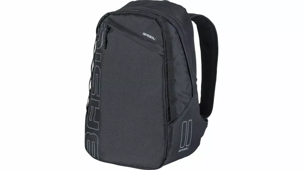 Ein Rucksack, mit dem ein schweißnasser Rücken der Vergangenheit angehört: Der Fahrradrucksack Flex von BASIL stellt dafür eine ideale Lösung dar. Mit dem Hook-On-System kann man den Rucksack einfach wie eine Tasche auf dem Gepäckträger einhaken. Das funktioniert natürlich auch auf einem E-Bike. Weil man den Rucksack auf dem Gepäckträger mitnimmt, ist der Rücken auch am Ziel noch trocken. Zudem fährt man, da das Gewicht der Tasche ein Stück tiefer gelagert ist, stabiler und sicherer. <br><br>Der Flex besteht aus hochwertigem Polyester und verfügt über ein hochmodisches Design. Auf dem Weg zum Sport? Nehmen Sie den Flex mit. Unterwegs zur Arbeit? Haken Sie den Fahrradrucksack bequem an Ihrem Gepäckträger fest. Bei zahlreichen Gelegenheiten profitiert man von dieser Transport-Möglichkeit. <br>Der Rucksack hat gepolsterte Tragegurte sowie ein gepolstertes Rückenteil. Im vorderen Fach mit Reißverschluss und einem weiteren Reißverschlussfach lassen sich alle wichtigen Dinge griffbereit verstauen. Die angebrachten Reflektoren und die Möglichkeit, eine LED-Beleuchtung zu befestigen, sorgen dafür, dass man bei Dunkelheit besser gesehen wird.