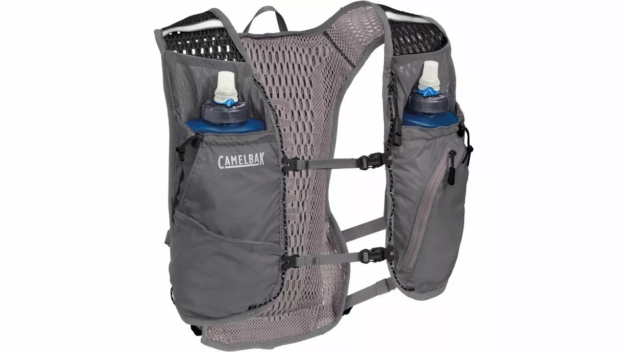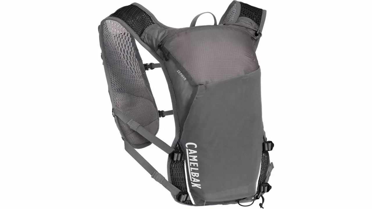 Ob nun zu Fuß oder auf dem Bike die Zephyr Vest von CAMELBAK ist eine minimalistische Trinkweste für Trainingseinheiten auf dem Trail. Flaschenhalter an den Schultergurten bieten Platz für zwei Quick Stow Flask Flaschen à 500 ml. <br><br>Die antimikrobakterielle Weste ist aus innovativem Strick-Mesh gefertigt und mit einer Signalpfeife ausgestattet. Das Packvolumen von zehn Litern bietet reichlich Platz für Verpflegung und Ausrüstung. Weitere Verstaumöglichkeiten bieten Stretch-Außenfächer. Außerdem gibt es eine sichere Handytasche und Trekkingstock-Befestigungen.<br><br>Mit all den Details kommt die Weste auf ein Fliegengewicht von 200 g. Geeignet ist sie für Menschen mit einem Brustumfang von 71 bis 127 cm.