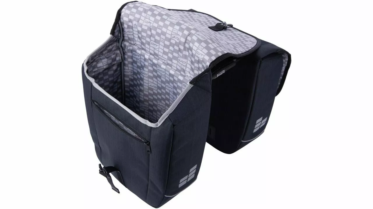 Viel Gepäck dabei, aber trotzdem eine stabile Balance auf dem Fahrrad: In der sportlich-stilvollen Doppelpacktasche Neo.Double MIK XL von CONTEC lassen sich Gegenstände ohne große Mühe und gut organisiert mitnehmen. <br><br>Ausgestattet ist diese Fahrradtasche mit dem MIK-Adapter von BASIL. Mit diesem wird das Befestigen am MIK-Systemträger oder an einer entsprechenden Trägerplatte zum Kinderspiel. <br>Vom Volumen her ist man hier mit einem Fassungsvermögen von 33 l gut aufgestellt. Dieses teilt sich auf 34 cm Länge, 15 cm Breite und 35 cm Höhe auf. <br><br>Von der Aufteilung her profitiert man von einem großen Hauptfach. Diesem schließen sich 2 kleinere Reißverschlussfächer an Front und Deckel an. Optisch frischen dabei Farbakzente an den Nähten sowie am Reißverschluss die Tasche auf.<br><br>Darüber hinaus gelingt es, den Inhalt der Fahrradtasche vor äußeren Einflüssen zu schützen. Die Neo.Double MIK XL besteht nämlich aus wasserabweisendem Polyester. <br>Ein nettes Extra stellen die reflektierenden Elemente dieser Tasche dar. Sie schaffen eine bessere Sichtbarkeit und erhöhen somit die Sicherheit im Straßenverkehr. <br><br>Insgesamt sind Pendler und Tourenfahrer mit der Neo.Double MIK XL von CONTEC sehr gut aufgestellt. Sie vereint zahlreiche Vorteile miteinander, von denen Sie unterwegs profitieren.