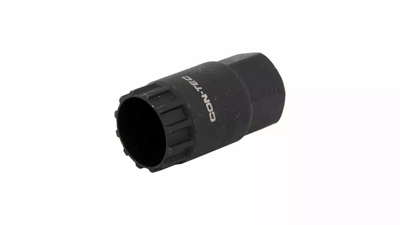Werkzeug für SHIMANO Kassettenzahnkränze gesucht? Der CONTEC Zahnkranzabzieher eignet sich perfekt zur Montage und Demontage von SHIMANO Zahnkränzen. Das Werkzeug wird einfach mit der gerieften Seite in die Befestigungsschraube der Kassette am ausgebauten Hinterrad gesteckt und kann dann mit einer 1/2 Knarre oder einem 21 mm Schlüssel geöffnet werden. Währenddessen wird die Kassette dabei mit einer Kettenpeitsche fixiert. <br><br>Das Profi-Werkzeug für alle Fahrräder mit gängigen SHIMANO Kassetten.