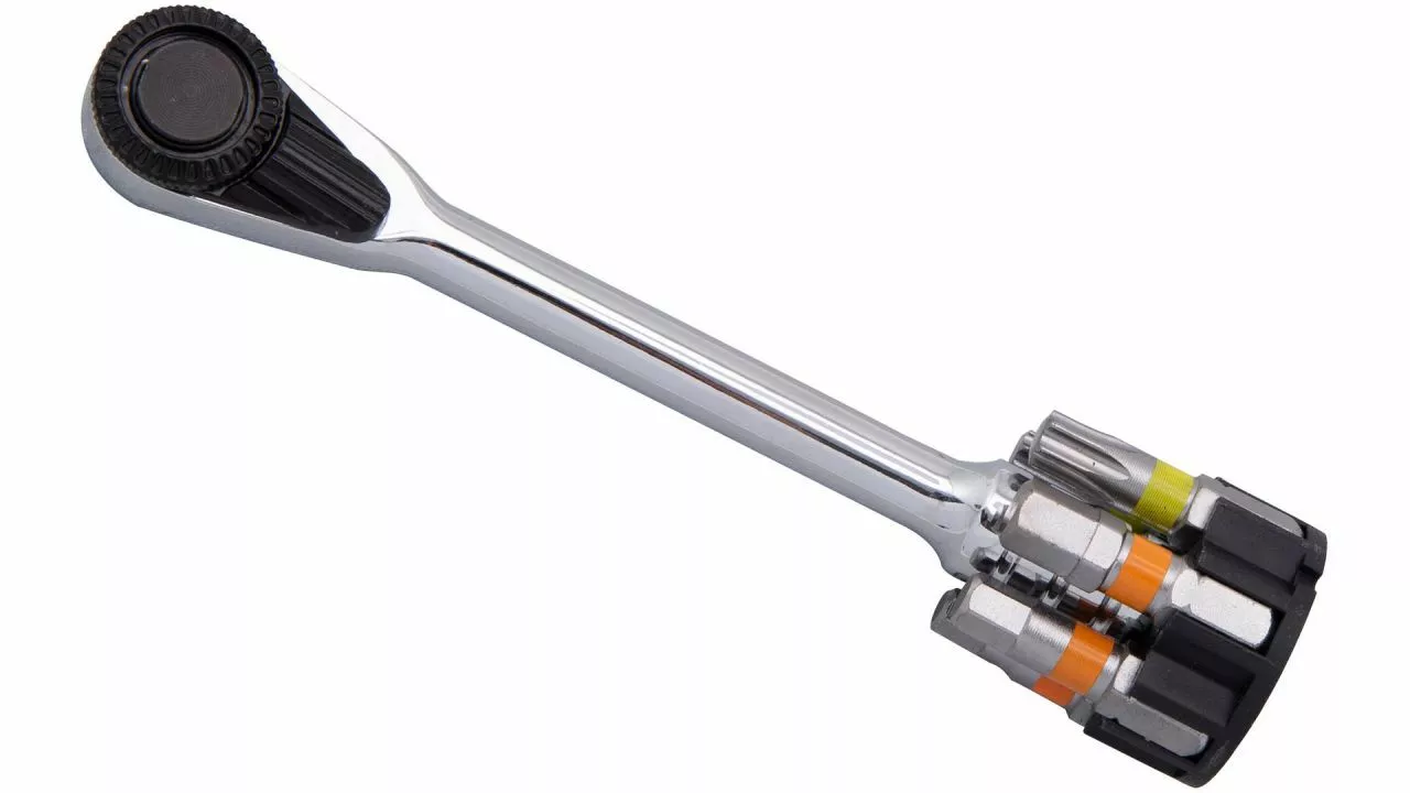 Die Steckschlüssel-Ratsche TFR Micro Ratchet Smart von CONTEC ist ein praktisches Multitool für unterwegs. Seine sechs mitgelieferten ¼''-Bits stecken praktischerweise am Griffende und sind so also immer dabei. Die Ratsche bietet gleich zwei Aufnahmen und eine Umschaltfunktion. Aufbewahrt wird die TFR Micro Ratchet Smart in einer robusten Alu-Hülle.