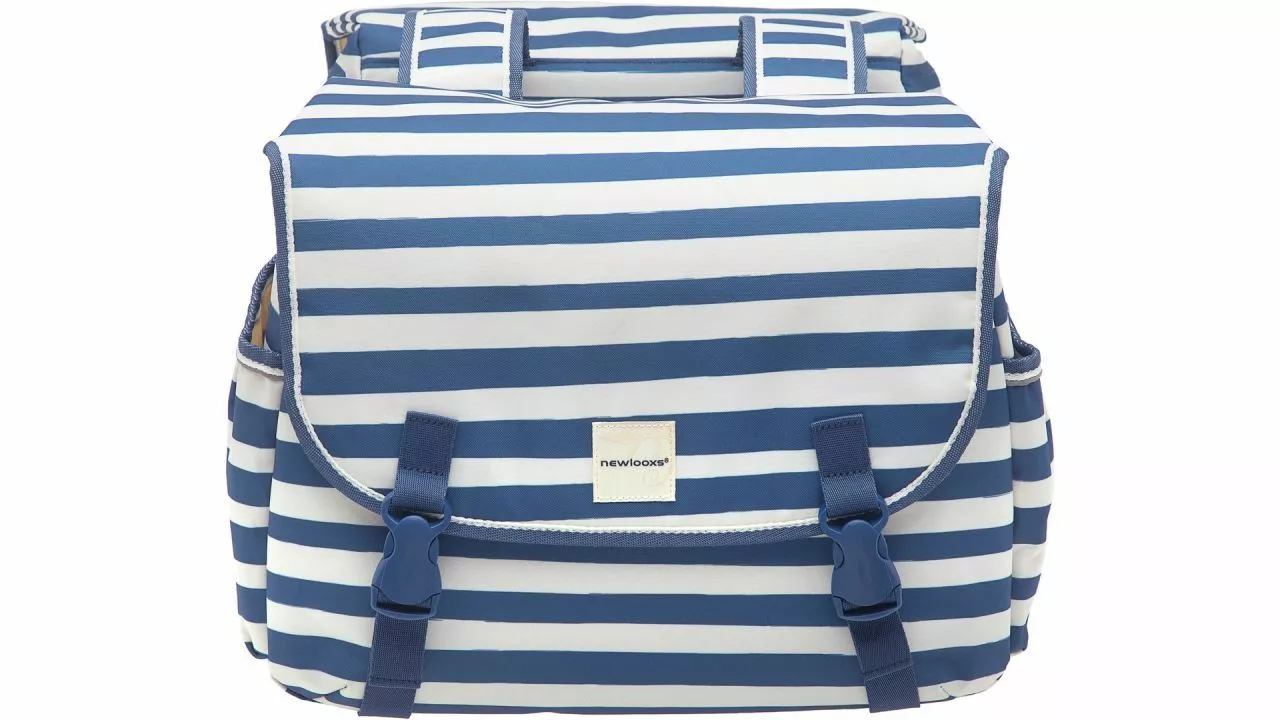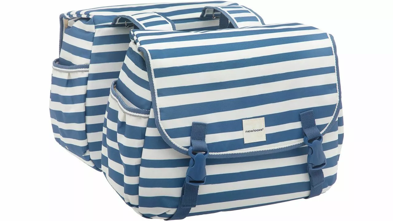 Eine fröhliche Ergänzung zu jedem Fahrrad: Bei der Joli Double von NEW LOOXS handelt es sich um eine moderne doppelte Fahrradtasche.<br>Da sie aus wasserabweisendem Polyester, kann der modischen Tasche auch ein kleiner Regenschauer nichts anhaben. <br><br>Die Klappe lässt sich einfach und schnell mit einem Klettband verschließen. Außerdem verfügt die Tasche über ein zusätzliches Reißverschlussfach. So bietet sie Platz für alles, was Sie brauchen. <br>Darüber hinaus sind Sie dank der Reflektoren auf beiden Seiten der doppelten Fahrradtasche auch im Dunkeln gut sichtbar.