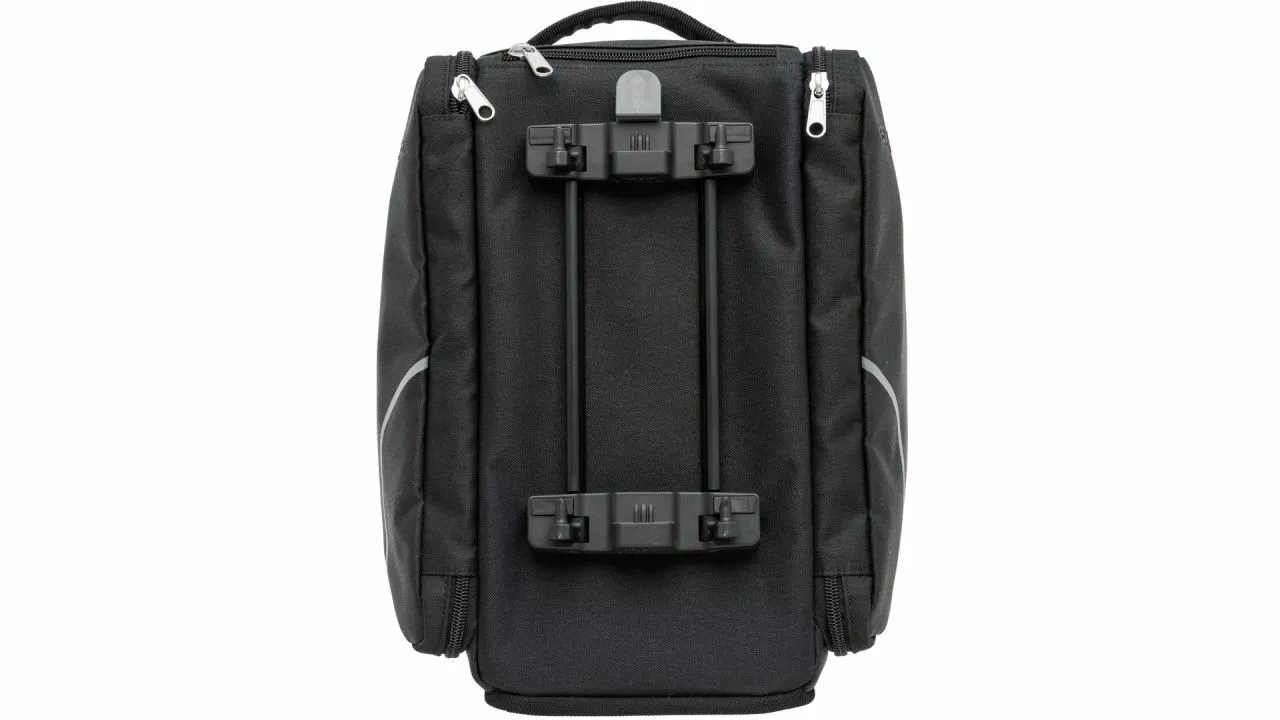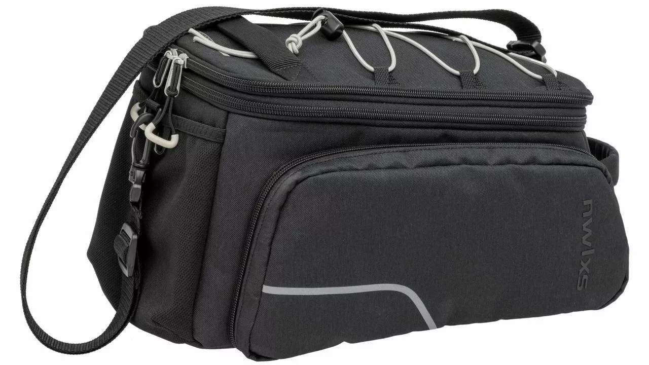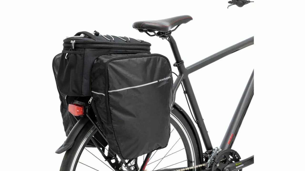 Der Sports Trunkbag von NEW LOOXS ist eine wasserabweisende Gepäckträgertasche, die du optimal für Touren nutzen kannst (die mitgelieferte Regenschutzhaube macht die Tasche wasserdicht). Sie rundet das Taschengerüst rund um den Gepäckträger ab. 31 l bieten ausreichend Stauraum, um Wechselkleidung sicher zu verstauen. Auf dem Weg vom Rad ins Hotelzimmer kannst du die Tasche mit dem praktischen Trageriemen auch gut über die Schulter nehmen. <br><br>Die Größe des Hauptfaches lässt sich je nach Bedarf über einen Reißverschluss entweder verkleinern oder vergrößern. Außerdem verfügt die Tasche zusätzlich über zwei abklappbare Seitentaschen sowie ein Fach für die Trinkflasche. <br><br>Du hast die Wahl: Für die Sports Double gibt es drei verschiedenen Befestigungsmöglichkeiten. Entweder mit MIK- oder Racktime-Adapter oder aber mit Riemen. Bitte beachte, dass die MIK und Racktime-Adapter nur für entsprechende Gepäckträgersysteme geeignet sind.