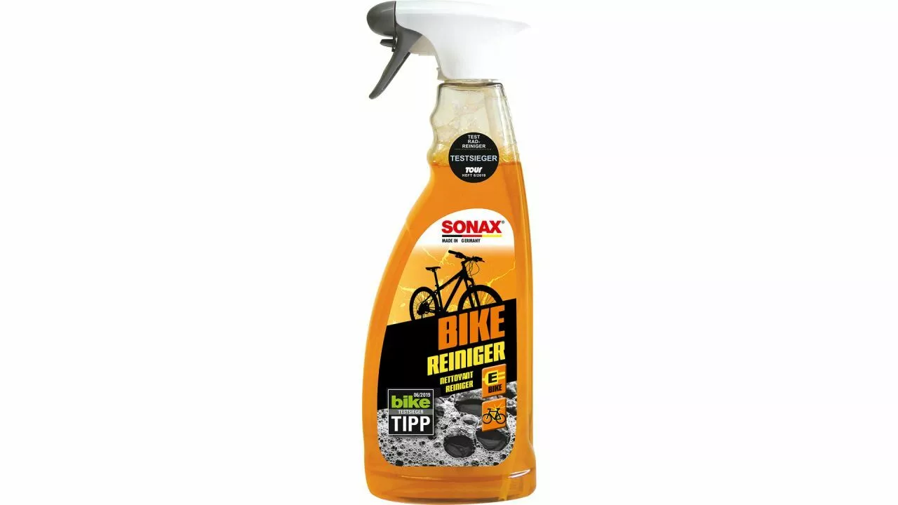 Das Fahrrad darf ruhig einmal dreckig werden, man muss es nur schnell wieder sauber bekommen. Dieser Fahrradreiniger von SONAX stellt Verschmutzungen seine geballte Kraft entgegen. Speziell für Zweiräder wie auch E-Bikes konzipiert macht er mit Verschmutzungen kurzen Prozess. Besonders als Kettenreiniger und zum Säubern des Kettenblatts und der Zahnkränze beweist er Stärke.<br><br>Allerdings entfernt dieser Reiniger hartnäckigste Verschmutzungen am gesamten Fahrrad. Sein Geheimnis liegt in einer Rezeptur, die hochwirksam und gründlich ist. Die innovative Formel zeichnet sich darüber hinaus durch eine äußerst zuverlässige Materialverträglichkeit aus. <br><br>Auch Mattlacke und Komponenten aus Carbon, Kunststoff, Aluminium oder Stahl bekommt man mit diesem Fahrradreiniger schonend sauber. Benutzt man ihn regelmäßig, schützt er ebenso vor Korrosion. Ob in der 750-ml-Sprühflasche oder gleich als 5-l-Kanister: Dieses Fahrrad-Pflegemittel lässt Verschmutzungen auch an E-Bikes keine Chance.