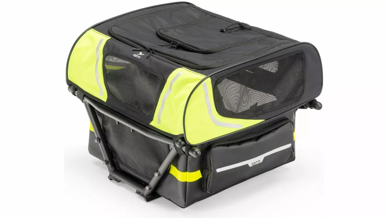 Ab aufs Rad und der Hund kommt mit – egal, bei welchem Wetter. Das Dog Roof Mini ist eine passende Abdeckung für TERNs Soft Crate Mini Körbchen, in dem du deinen geliebten Vierbeiner sowieso schon auf dem Fahrrad transportieren kannst. Die Abdeckung erhöht aber nochmal die Sicherheit während der Fahrt und schützt deinen Beifahrer vor Regen und Sturm.<br><br>Für eine gute Belüftung sorgen zum Einen die zwei Fenster im Cabrio-Dach, die sich mit einem Reißverschluss öffnen und aufrollen lassen, und zum Anderen die luftdurchlässigen Mesh-Seitenteile des Verdecks. Hergestellt aus einem strapazierfähigem und leicht zu reinigendem Stoff.